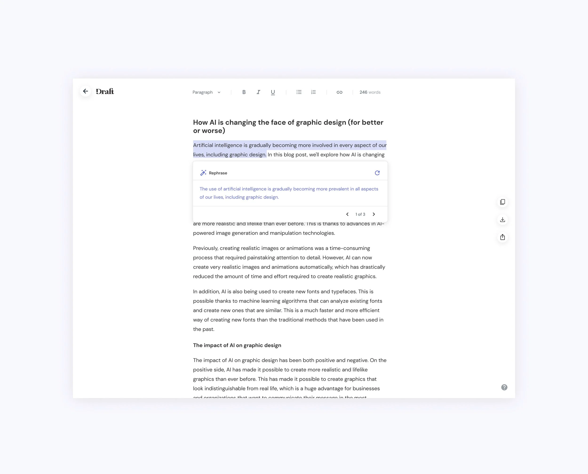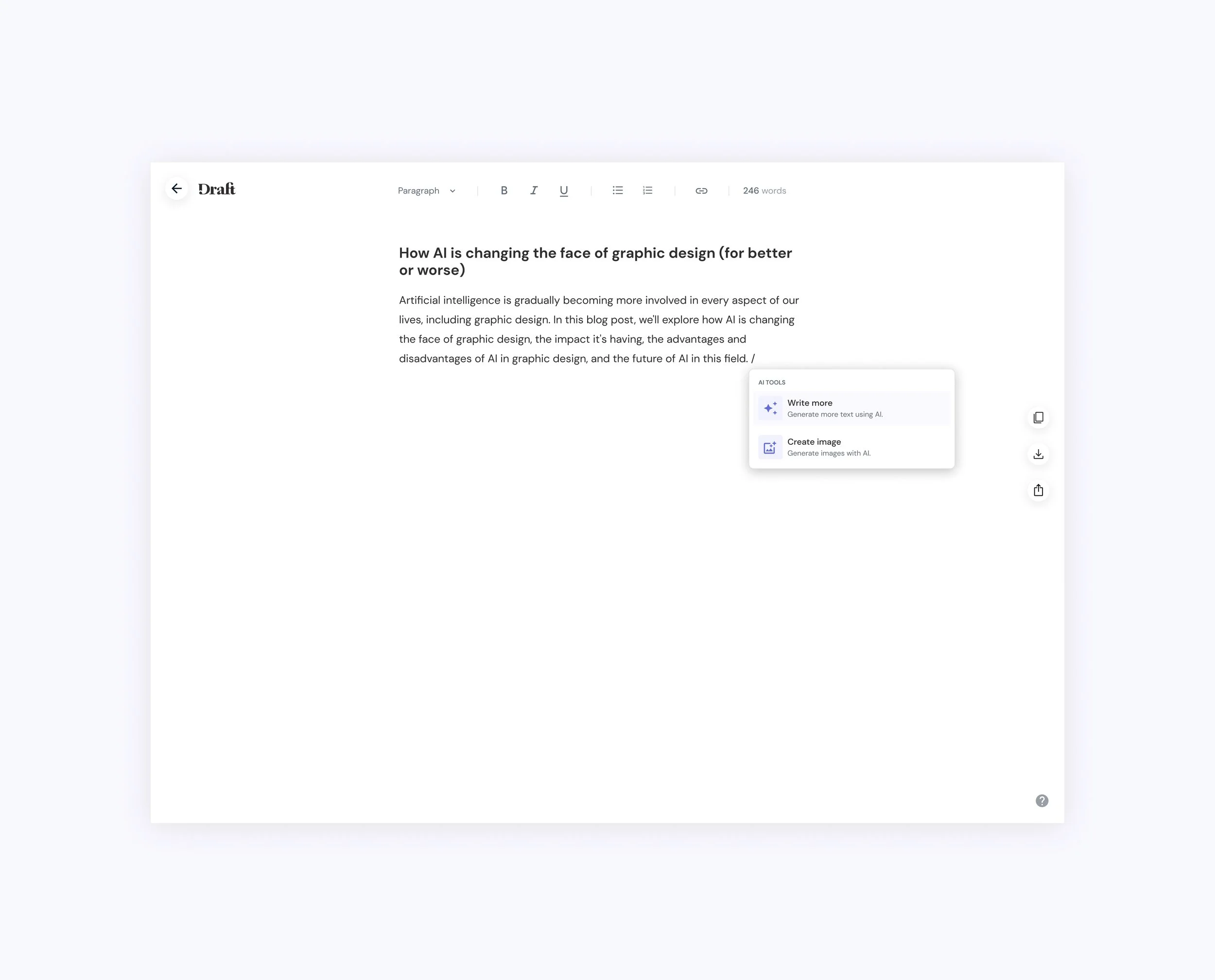In just a few short years, AI has gone from being the stuff of sci-fi to disrupting our everyday lives. One area that AI has completely revolutionized is writing. Draft recognized the potential of this technology and set out to create an AI-powered text editor — a tool that could assist any writer in producing better content, faster.